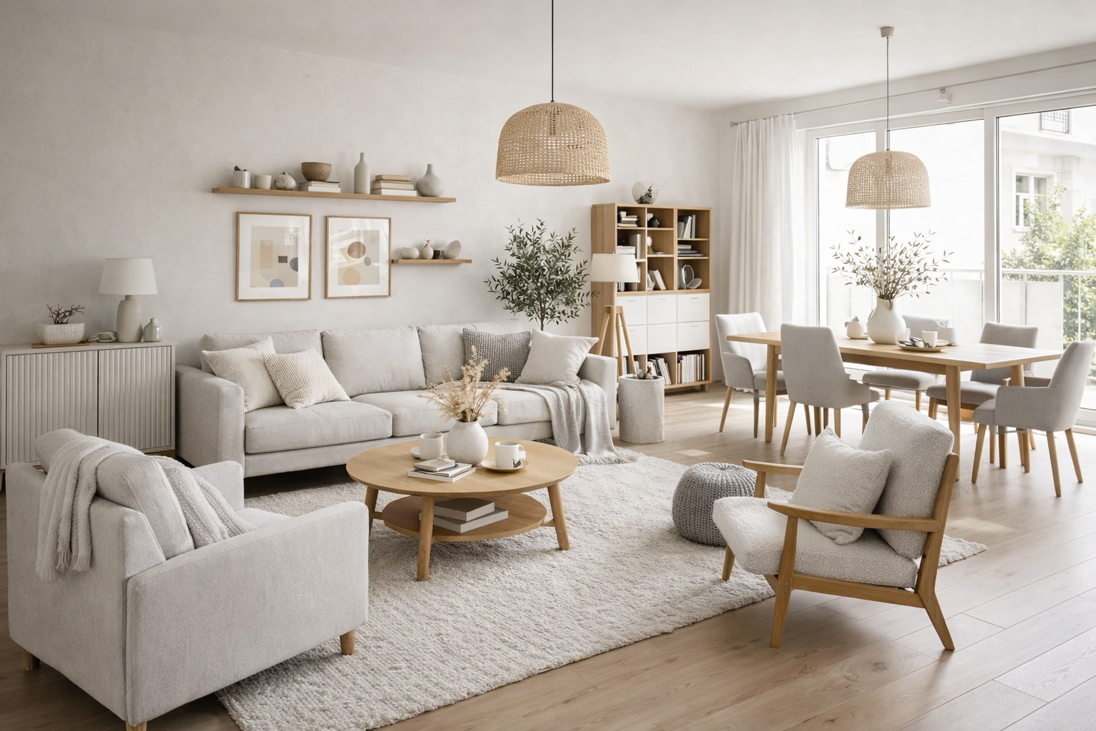 実際の仕事の中で私がよく活用するのが、素材と色の組み合わせのシンプルなルールです。壁はホワイトかライトグレー。床や家具にはオークやパインなどのナチュラルウッドを選ぶ。この組み合わせだけで、すでに空間の8割は完成すると言っても過言ではありません。